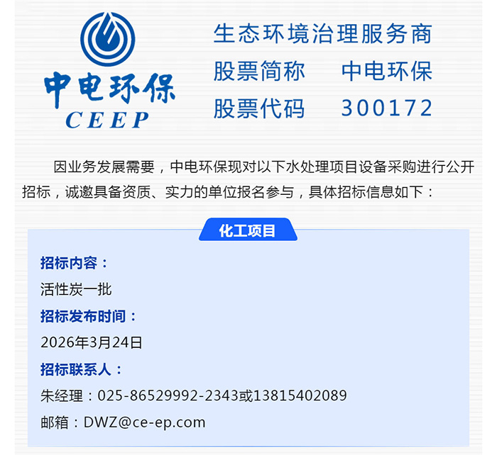 【招標(biāo)-26-08期】中電環(huán)保誠邀參與:水處理項目設(shè)備采購公開招標(biāo)